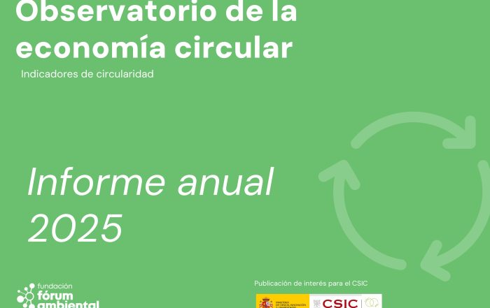 L’Observatori de l’Economia Circular és una iniciativa de la Fundació Fòrum Ambiental que neix per contribuir a la transformació circular mitjançant la difusió dels indicadors de seguiment de la circularitat més rellevants per a l’economia espanyola.