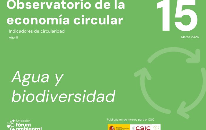L’Observatori de l’Economia Circular és una iniciativa de la Fundació Fòrum Ambiental que neix per contribuir a la transformació circular mitjançant la difusió dels indicadors de seguiment de la circularitat més rellevants per a l’economia espanyola.