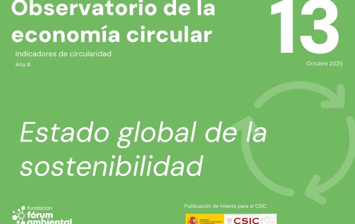 L’Observatori de l’Economia Circular és una iniciativa de la Fundació Fòrum Ambiental que neix per contribuir a la transformació circular mitjançant la difusió dels indicadors de seguiment de la circularitat més rellevants per a l’economia espanyola.