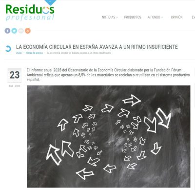 El Informe anual 2025 del Observatorio de la Economía Circular elaborado por la Fundación Fórum Ambiental refleja que apenas un 8,5% de los materiales se reciclan o reutilizan en el sistema productivo español. [Más +]
